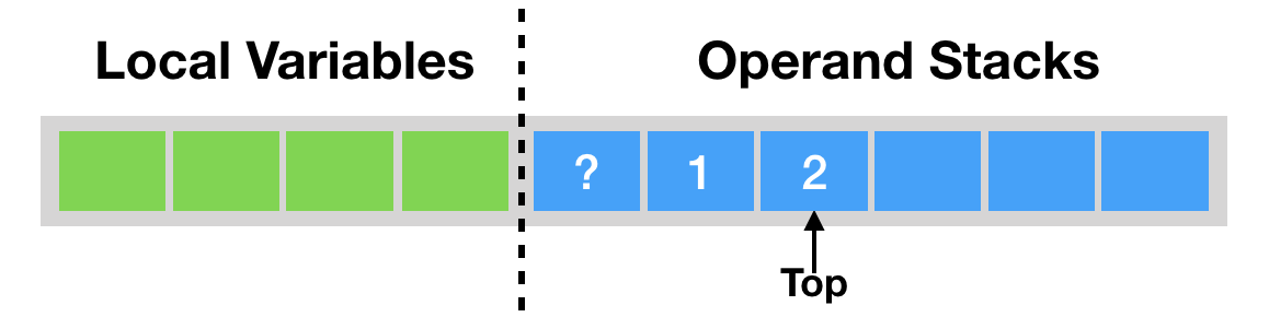 - iadd只消耗栈顶的两个元素,iadd并不关心更远的元素,也不会对它们进行修改