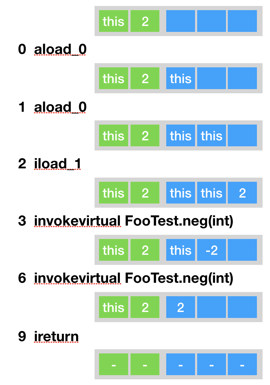 - 在进行方法调用之前,需要依次压入调用者(invokestatic不需要)以及各个参数